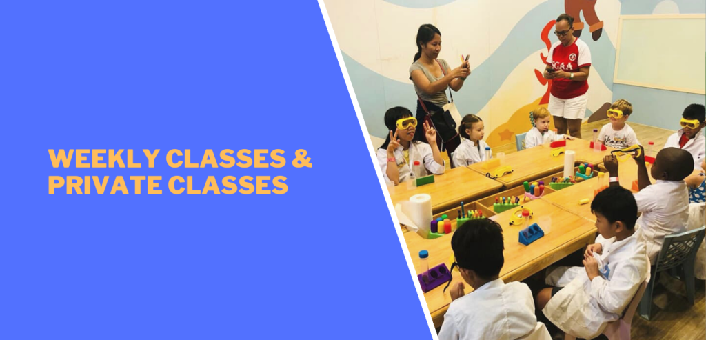 These classes are a platform for our little scientists to keep the thinking cap on and be inquisitive as to why somethings happen and how! Children will learn and explore scientific principles through various hands on experiments & games. They also discuss and analyze findings to understand practical application of the scientific principle around us. Private classes will be run at your venue i.e : home or clubhouse